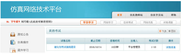 可通過平臺建立仿真試卷,用于學員培訓、自測及考試。仿真試卷方案可保存、可修改,可多次重復使用。