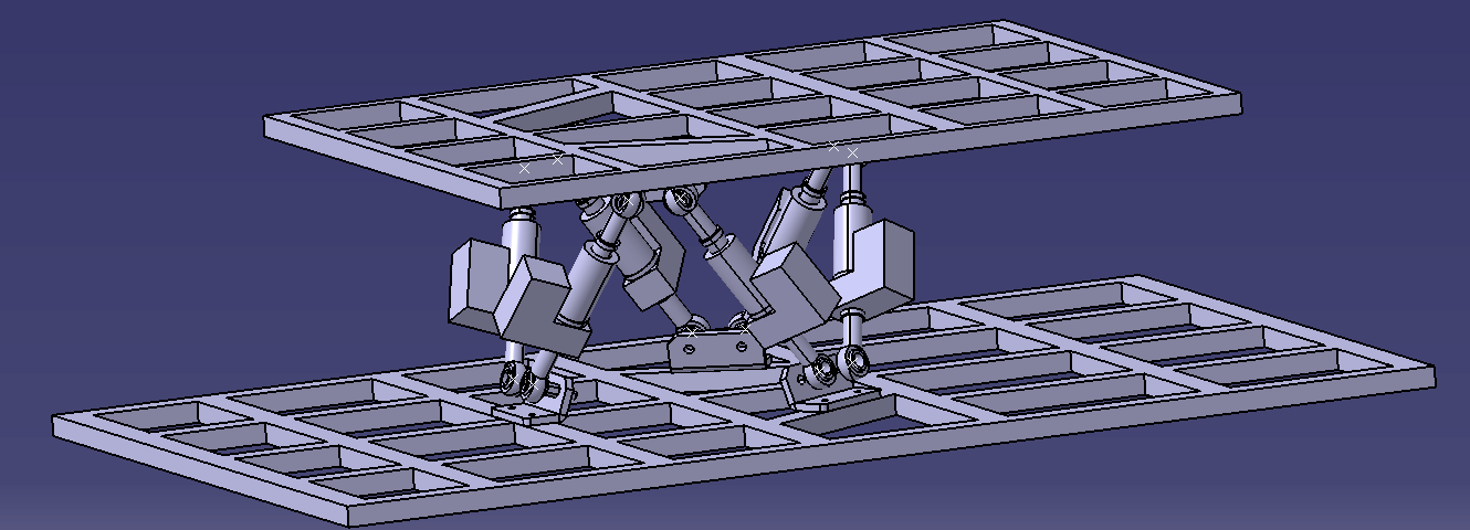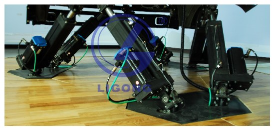 6自由度伺服電機(jī)控制電缸動感平臺,可實現(xiàn)前后、左右、上下三個方向的動態(tài)運動。伺服電動缸行程:200mm,前后傾角30º,左右傾角30º,水平轉(zhuǎn)角30º。承重:1000KG;總重250KG。采用高速六自由度反解算法,快速響應(yīng)飛機(jī)的動態(tài),達(dá)到與畫面完全同步的動態(tài)效果。