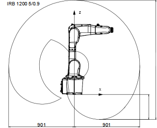 IRB 1200 機身小巧、有效工作范圍大,有利于加快生產(chǎn)節(jié)拍、減少設(shè)備占用空間。