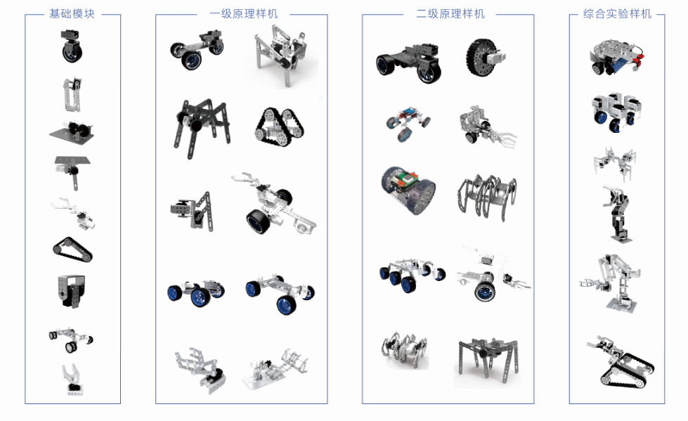 機器人案例 50 50種以上機器人組裝案例,涵蓋輪型、履帶型、關節(jié)型、仿生型等。可搭建MKH-JQ02所含機構。