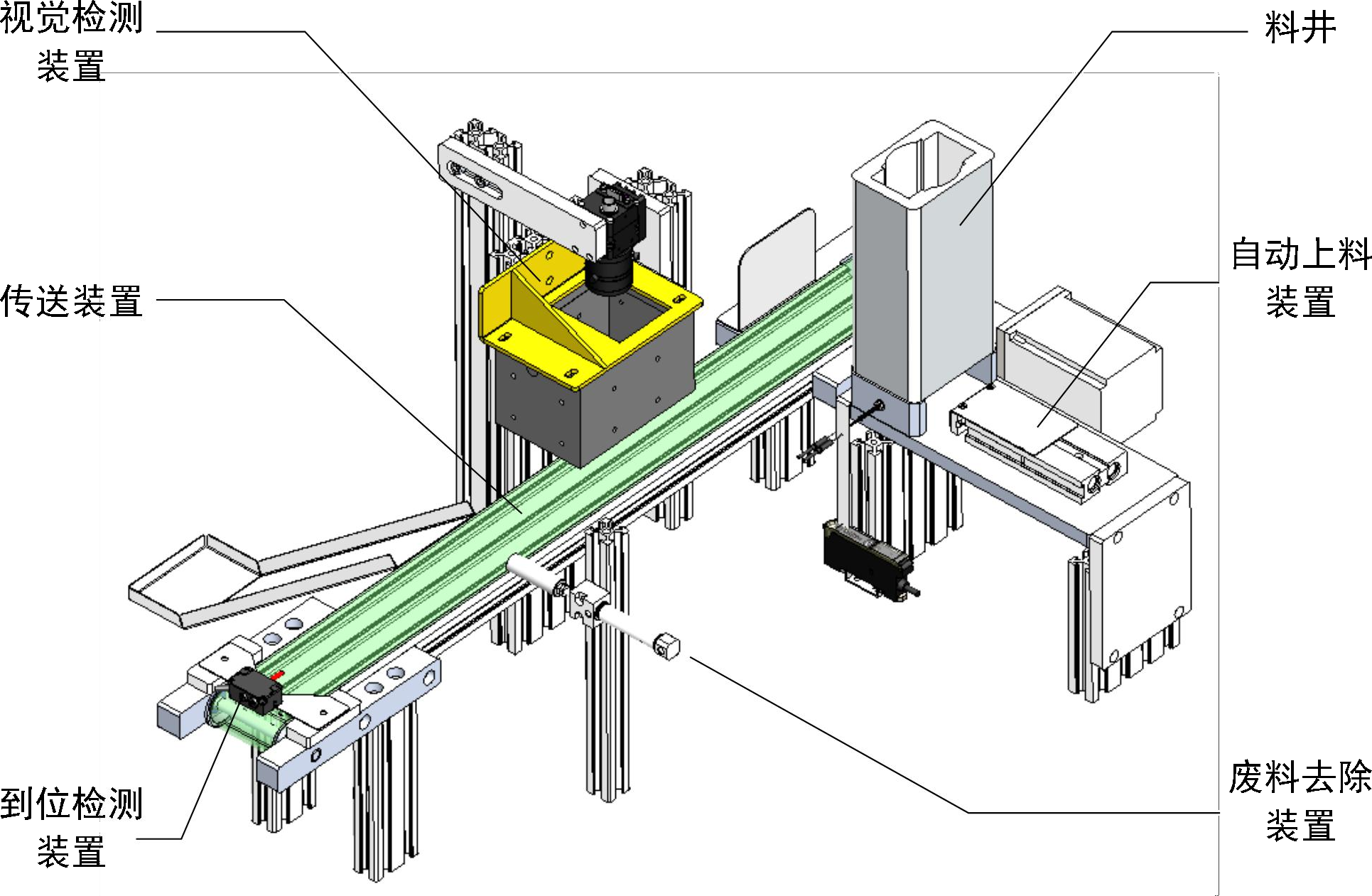 模擬流水線模塊由多功能料井、自動上料裝置、傳送裝置、視覺檢測裝置和廢料去除裝置組成,是一個集工業(yè)機器人、PLC、人機交互控制、傳感器、氣動控制、視覺檢測等前沿技術(shù)的綜合性實驗平臺。