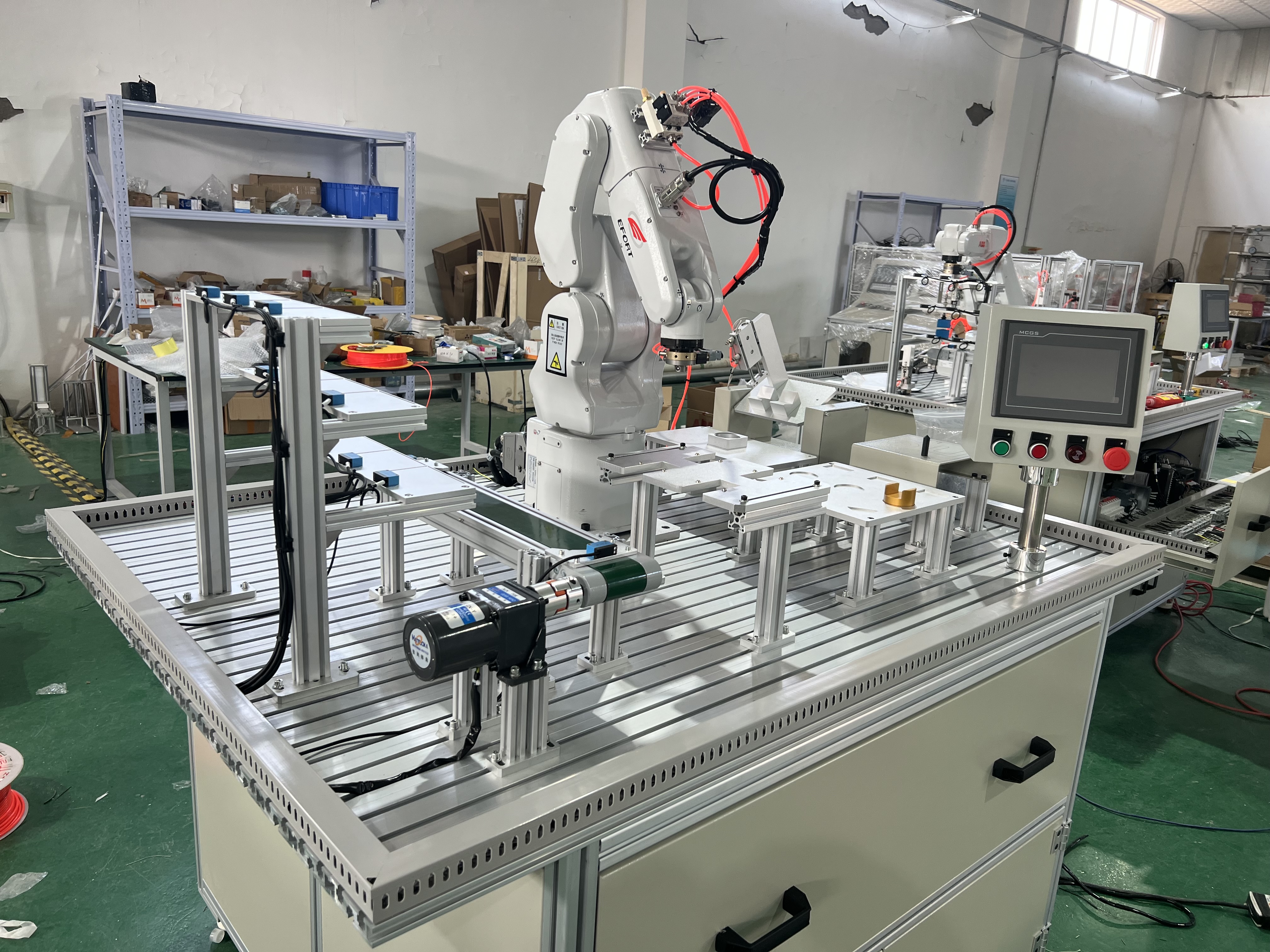 2、流水線模塊:流水線應(yīng)用場(chǎng)景與工廠實(shí)際物流情況相似,可進(jìn)行機(jī)器人點(diǎn)位示教編程與調(diào)試,可根據(jù)學(xué)習(xí)內(nèi)容不同而設(shè)置不同挑選形式,可根據(jù)工件不同采用不同的夾取夾具。