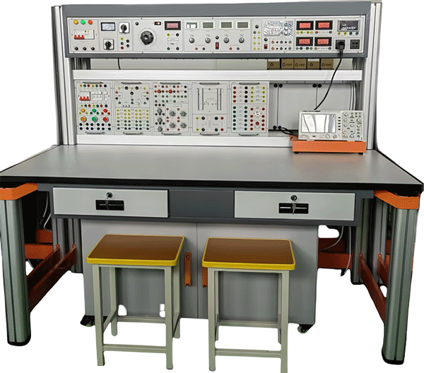 裝置由主機(jī)箱、實(shí)驗(yàn)桌、實(shí)訓(xùn)掛箱、獨(dú)立封裝實(shí)訓(xùn)電路模塊、移動(dòng)矮柜、示波器架、學(xué)生凳等組成。實(shí)訓(xùn)裝置支架與實(shí)訓(xùn)桌可組合、可拆裝。支架與桌腳一體,鋁合金結(jié)構(gòu),實(shí)訓(xùn)掛箱、各實(shí)驗(yàn)?zāi)K可根據(jù)實(shí)驗(yàn)需求自由組合放置。