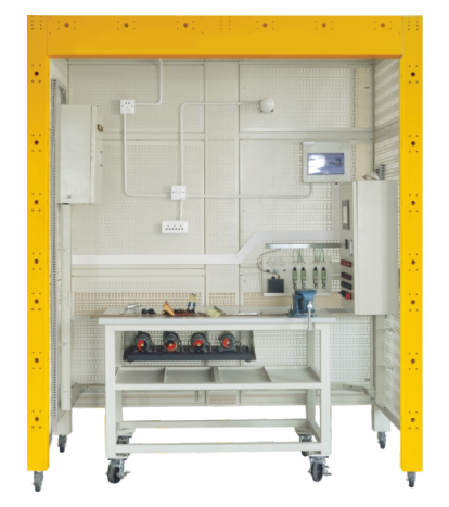 LGY-DQ06A型電氣安裝與維修實訓(xùn)考核裝置,可進行電工安裝。如橋架安裝、PVC管安裝、白熾燈座、日光燈、開關(guān)、插座、配電箱、控制箱等,裝置還包含有交流異步電動機、直流電動機、步進電機、伺服電機、溫度控制器、電偶、PLC、變頻器觸摸屏等控制與受控對象。該系統(tǒng)每個操作組配套一可移動式工具車和元件柜,便于對元件的保管和安裝施工。從根本上解決了學(xué)校在普通墻面上進行的安裝培訓(xùn)的使用不方便、實訓(xùn)范圍窄的問題。