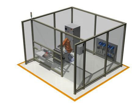 13安全護欄:隔離護欄,高1000mm,框架采用2mm厚灰色棟梁鋁合金型材,鋼化玻璃10mm厚;工作站全部通透利于觀察,玻璃中間沒有隔斷;并安裝一個側開門;門上安裝安全檢測元件,機器人自動運行必須在門關閉狀態(tài)下進行;系統(tǒng)工作站安裝有3個急停按鈕,分別位于操作控制臺、模型安裝臺、隔離護欄上,以備緊急情況使用。