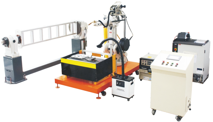 LGY-HJ017A型工業(yè)機器人焊接系統(tǒng)控制與應(yīng)用實訓(xùn)裝備主要由ABB1410機器人、IRC5機器人控制器、IRBP L600變位機、松下焊機、送絲裝置、焊槍、WeldGuide IV、焊接工作臺、煙霧凈化過濾器、氣瓶(100%工業(yè)液體二氧化碳)、PLC電氣控制柜、電腦工作臺等組成。設(shè)備主要運作功能是通過六自由度工業(yè)機器人與焊接系統(tǒng)、焊縫跟蹤系統(tǒng)、變位機系統(tǒng)以及二氧化碳工作氣體的完美結(jié)合,從而實現(xiàn)不同厚度的碳鋼的焊接焊縫跟蹤工作,同時支持直線圓弧焊接以及不同形狀的擺弧焊接和多層多道焊接功能。