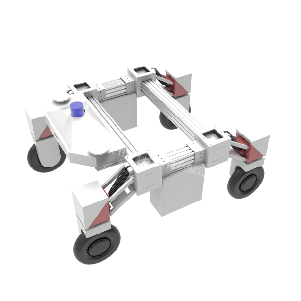 ▲11 模塊化設(shè)計,每個輪子以及轉(zhuǎn)向為一個單獨模塊單元,車體可以任意定制以適應(yīng)不同的地形,提供模塊化設(shè)計的圖片證明。