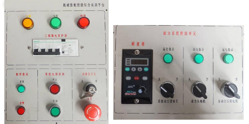 (2)三相電源指示(U 相、V 相、W 相)由 3 個不同顏色的指示燈組成,實時監(jiān)測實訓(xùn)平臺三相交流電源,正常通電情況下三個指 示燈都是點亮的。