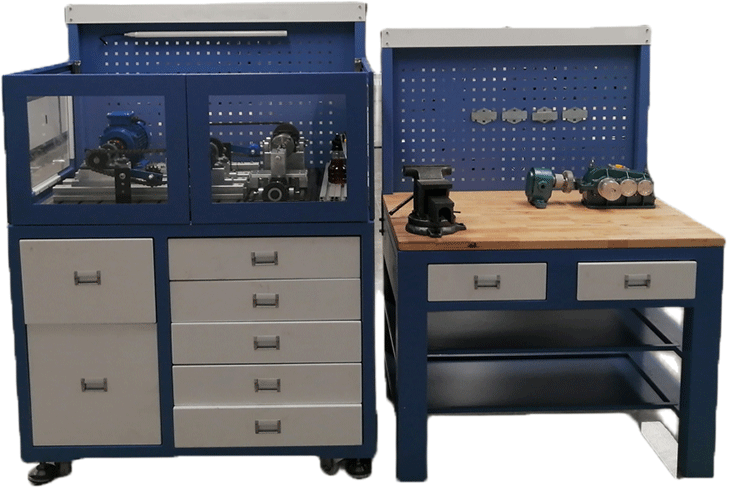 5.設(shè)有存儲柜,用于機(jī)械傳動零部件、工量具、資料等的儲存;底部采用工業(yè)腳輪,單輪承重不小于500kg。