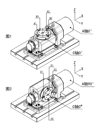 C軸:由伺服電機驅(qū)動工作臺作360º回轉(zhuǎn),當(dāng)回轉(zhuǎn)到指定位置后,伺服電機制動。需要轉(zhuǎn)動時,再由伺服電機驅(qū)動工作臺回轉(zhuǎn)。