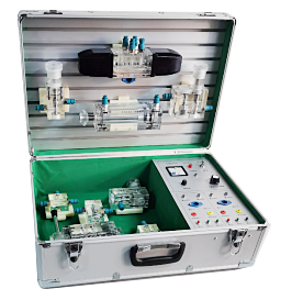 1.裝置采用模塊化設(shè)計,液壓系統(tǒng)回路建立在鋁型材組建的平臺上,電氣控制部分采用掛箱結(jié)構(gòu),泵站采用透明有機玻璃設(shè)計,供/回油均采用快速接頭連接方式,可根據(jù)實訓(xùn)需要隨時更換操作地點。也可以直接放置理論教室,邊講理論邊演示動作及過程,加強加深對理論的理解。