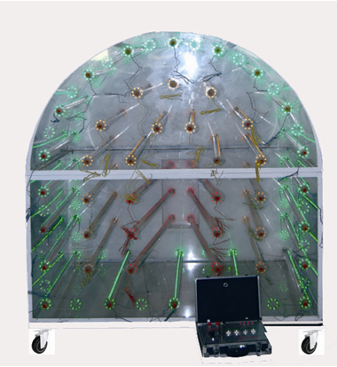 爆破時(shí),學(xué)員手?jǐn)Q放炮器手把送電后,可通過聲光電控系統(tǒng)顯示爆破四個(gè)順序(1—4),并產(chǎn)生全斷面爆破紅光,以及放炮時(shí)爆破聲音,增加現(xiàn)場(chǎng)實(shí)際聲、光立體效果,增強(qiáng)學(xué)員教學(xué)直觀感。