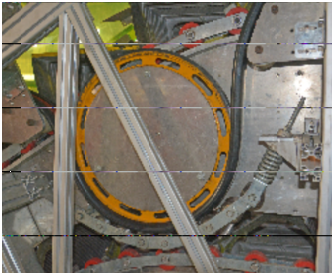 由扶手齒輪、扶手摩擦輪、張緊輪、托輥輪、壓輥輪、托帶鏈、回轉(zhuǎn)鏈行扶手導(dǎo)軌組成扶手帶動力系統(tǒng)。