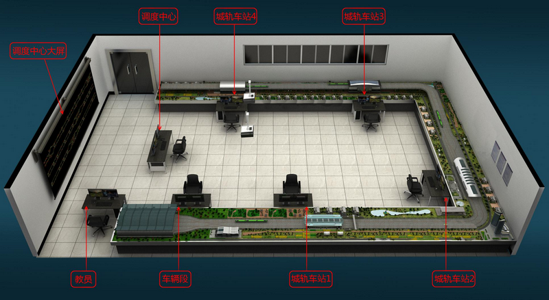 系統(tǒng)包括1套OCC控制中心ATS仿真系統(tǒng)、6套車站ATS仿真系統(tǒng)、1套車輛段計算機聯(lián)鎖仿真系統(tǒng)、1套ATP/ATO仿真系統(tǒng)、1套教員管理系統(tǒng)和1套實物沙盤組成。