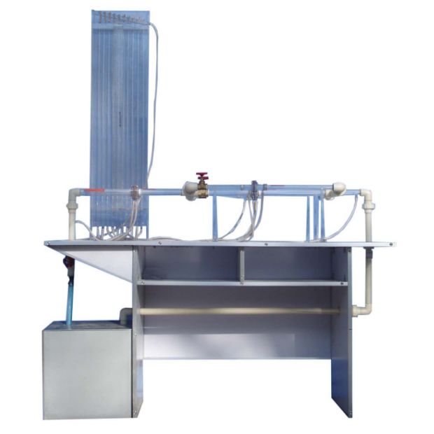 叉管、測壓管、計量水箱、水泵、蓄水箱、測壓排、刻度標(biāo)尺、秒表、玻璃溫度計、回水系統(tǒng)、不銹鋼實驗臺架。