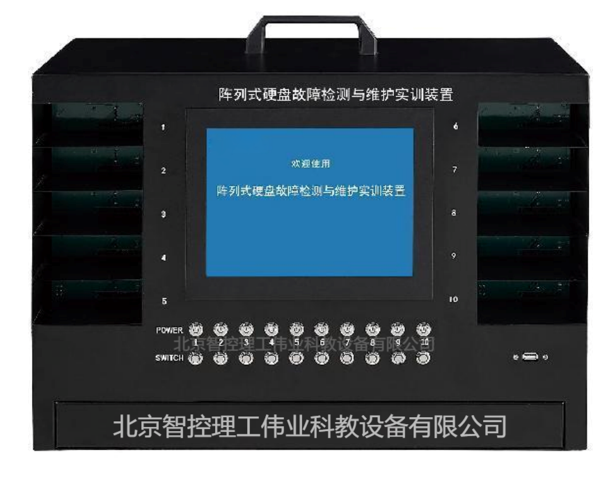 (1)陣列式硬盤故障檢測與維護(hù)實(shí)訓(xùn)裝置采用全新一代結(jié)構(gòu)化設(shè)計,分為主體框架、多功能電路板和各種配線等部分組成;框架 采用高強(qiáng)度全鋼結(jié)構(gòu)設(shè)計,鋼板為1.0毫米冷軋鋼板,強(qiáng)度高,不易變形,表面噴塑處理,不生銹,環(huán)保美觀。