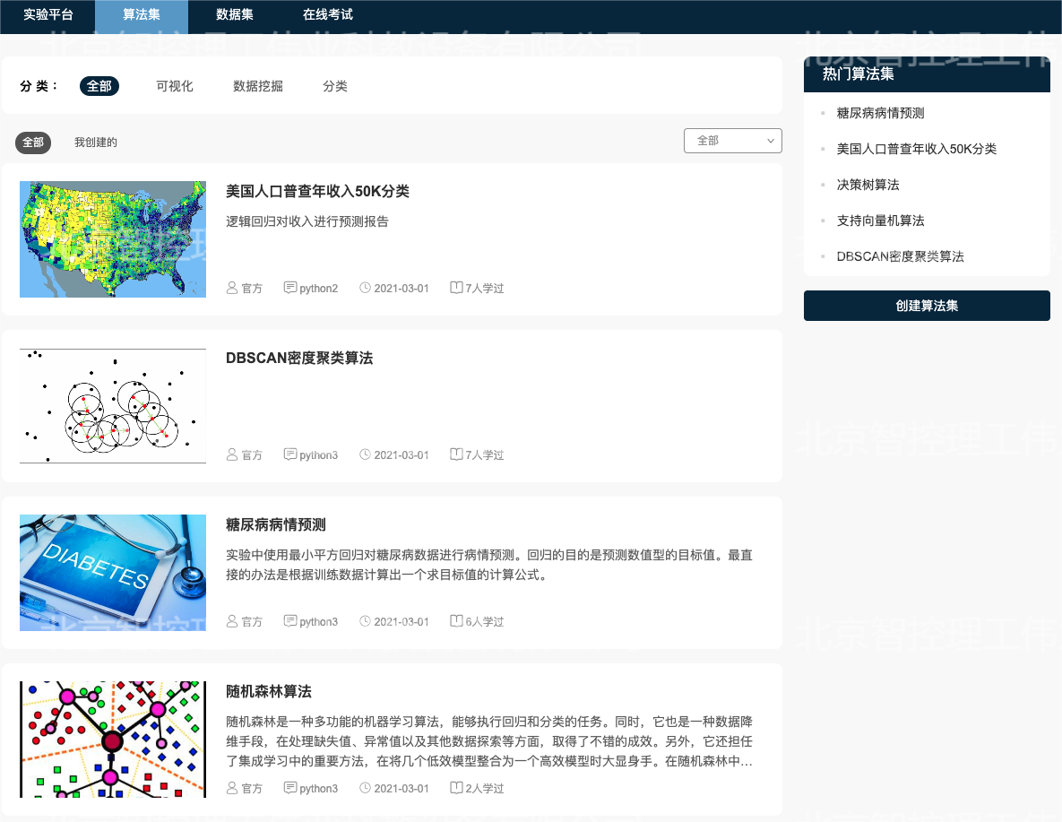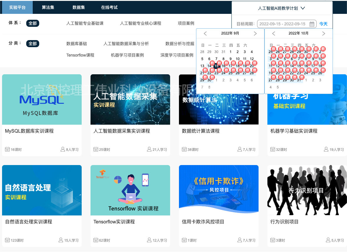 人工智能實(shí)訓(xùn)課程資源共計200多個,資源涵蓋了操作系統(tǒng)類、數(shù)據(jù)庫類、編程語言類、統(tǒng)計分析類、機(jī)器學(xué)習(xí)類、神經(jīng)網(wǎng)絡(luò)與深度學(xué)習(xí)類、自然語言處理類、機(jī)器視覺類、智能硬件類課程等諸多方面課程,課程類型包括基礎(chǔ)實(shí)訓(xùn)、關(guān)鍵技術(shù)掌握、應(yīng)用創(chuàng)新等,是一個綜合性的學(xué)習(xí)研究平臺;平臺配合專用的資源監(jiān)控系統(tǒng)、課程監(jiān)控系統(tǒng),可實(shí)時的監(jiān)控整個平臺的硬件資源負(fù)載以及學(xué)生學(xué)習(xí)的狀態(tài),可幫助教師合理的安排課程及對應(yīng)資源。