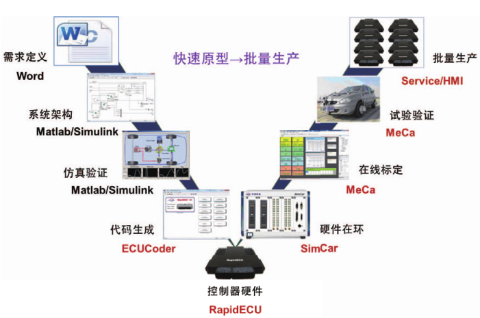 隨著人們對車輛舒適、安全、節(jié)能、環(huán)保等要求的日益提高,汽車智能化和電子化成為未來車輛技術(shù)的主要趨勢,由此對電子控制技術(shù)及開發(fā)者提出了更大的挑戰(zhàn)。對于國內(nèi)電控開發(fā)者而言,在 ECU 開發(fā)和產(chǎn)品化方面存在更大的困難,需要應(yīng)對更多的挑戰(zhàn)。ECU 主要包括控制器硬件和控制器軟件,其中的控制器軟件又包括基礎(chǔ)軟件與應(yīng)用軟件,應(yīng)用軟件決定了車輛駕駛體驗(yàn),是車輛及零部件子系統(tǒng)品牌差異化的主要體現(xiàn),是各大廠商自主研發(fā)的核心知識產(chǎn)權(quán),控制器硬件以及基礎(chǔ)軟件,是保證應(yīng)用軟件良好運(yùn)行的平臺。在開發(fā)階段和產(chǎn)品化階段,傳統(tǒng)開發(fā)方式一般采用不同的平臺,這些平臺間的移植和驗(yàn)證都存在較大的難度,需要花費(fèi)大量的時(shí)間、精力以及昂貴的費(fèi)用。對于剛剛起步的自主品牌在產(chǎn)量和成本的要求下,對于相對復(fù)雜的控制系統(tǒng),新產(chǎn)品的產(chǎn)品化幾乎成了難以完成的任務(wù)。