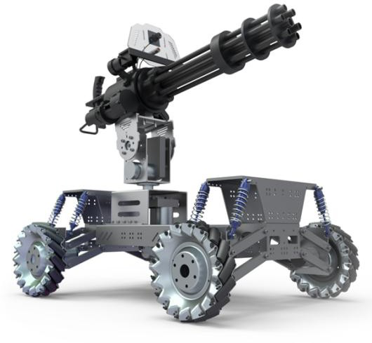 1. AI偵查機(jī)器人底盤(pán)采用全鋁結(jié)構(gòu),內(nèi)置麥克納姆輪四驅(qū)系統(tǒng),可適應(yīng)多種戶外場(chǎng)景,同時(shí)還可與鋁合金結(jié)構(gòu)梁結(jié)合進(jìn)行各個(gè)部件的承載與擴(kuò)展。
