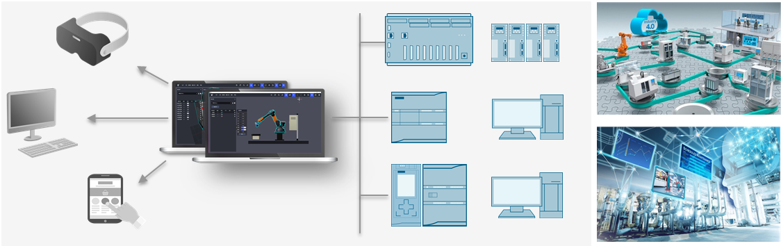LG-TVP01型 數(shù)字孿生系統(tǒng)能夠從虛擬機(jī)械設(shè)計、虛擬電氣接線再到虛實互動編程,虛擬調(diào)試以及集成調(diào)試的整個過程,同時配置XR互動仿真,能夠?qū)崿F(xiàn)多人協(xié)作的沉浸式應(yīng)用,TVP系統(tǒng)具有多種仿真和組合方式,支持半實物、全虛擬、以及3D互動的編程方式。