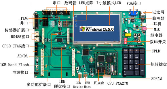 開發(fā)平臺采用核心板外加擴展板的模式,支持Linux 2.4/ 2.6 和Windows CE 5.0 /6.0 操作系統(tǒng)。